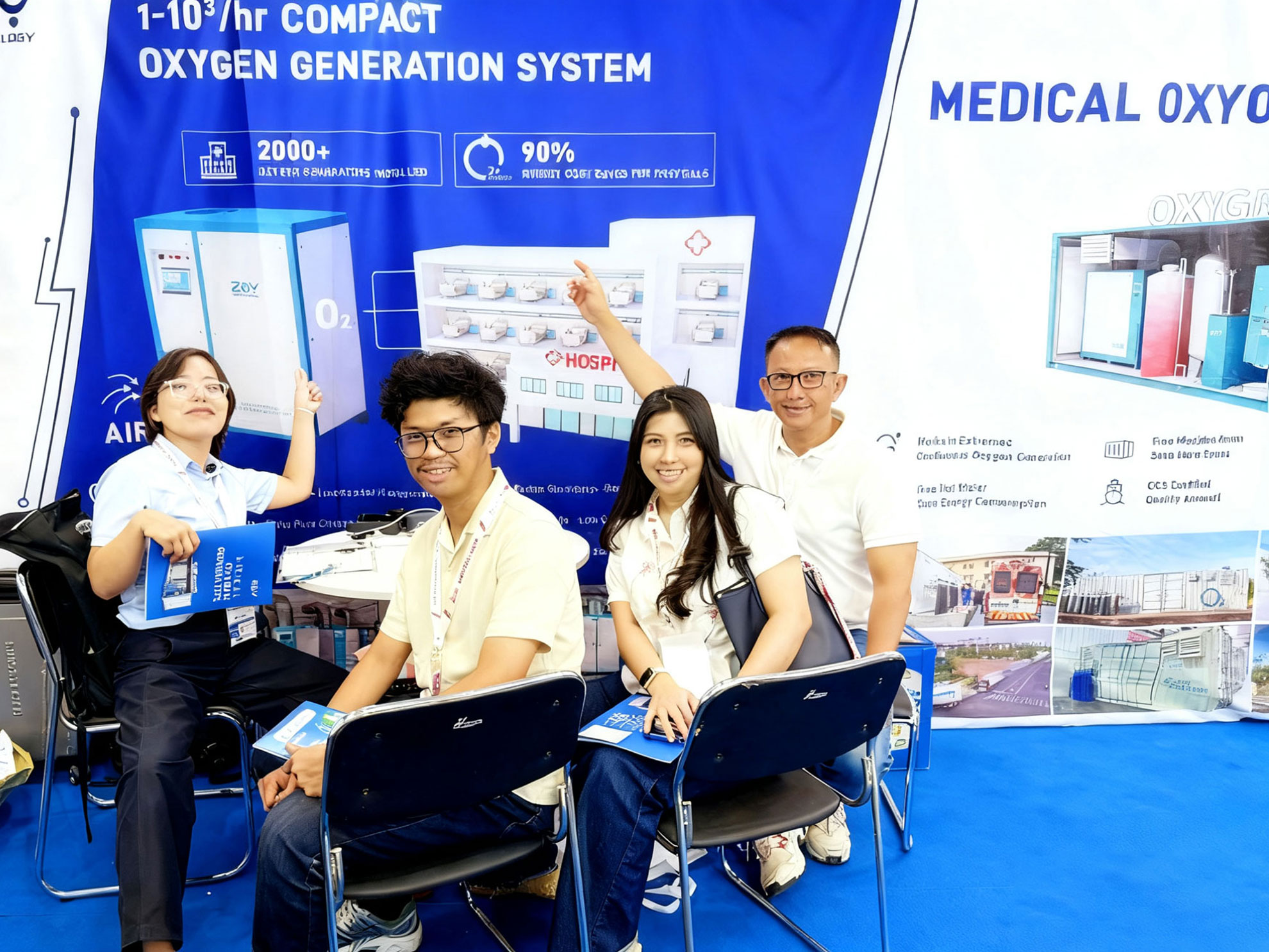 面向东南亚地区高温高湿的气候特点和持续增长的医用氧气需求,卓誉展示了高度适配本地化需求的制氧解决方案。该方案集发电、制氧、充瓶等多功能于一体,不依赖机房、接电即用,即便在极端天气下仍能稳定运行,精准匹配当地医疗机构对可靠、便捷氧源的迫切需求。
