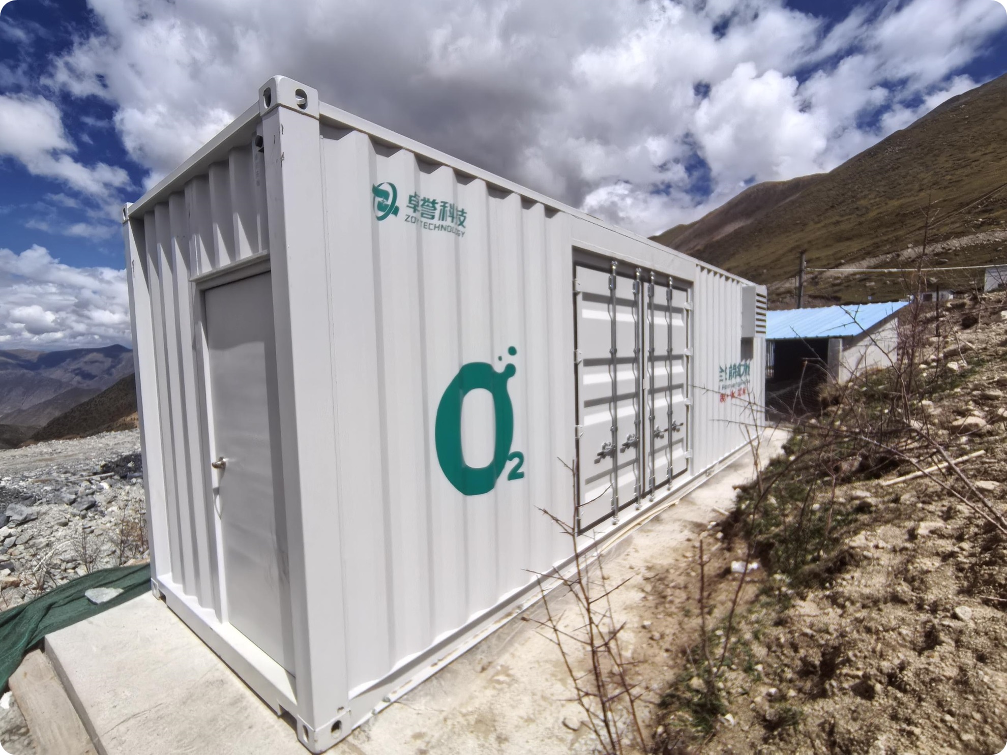 卓誉制氧方舱采用集成化设计理念,便于运输和快速部署,无需额外建设机房,能在恶劣的高原环境中稳定运行,成功突破了地域限制。制氧主机选用卓誉集成式中心制氧机组,产氧量大,并同步进行热能回收,为生活用水加热,兼具节能、稳定、耐用的特性,实现“零碳热水”。