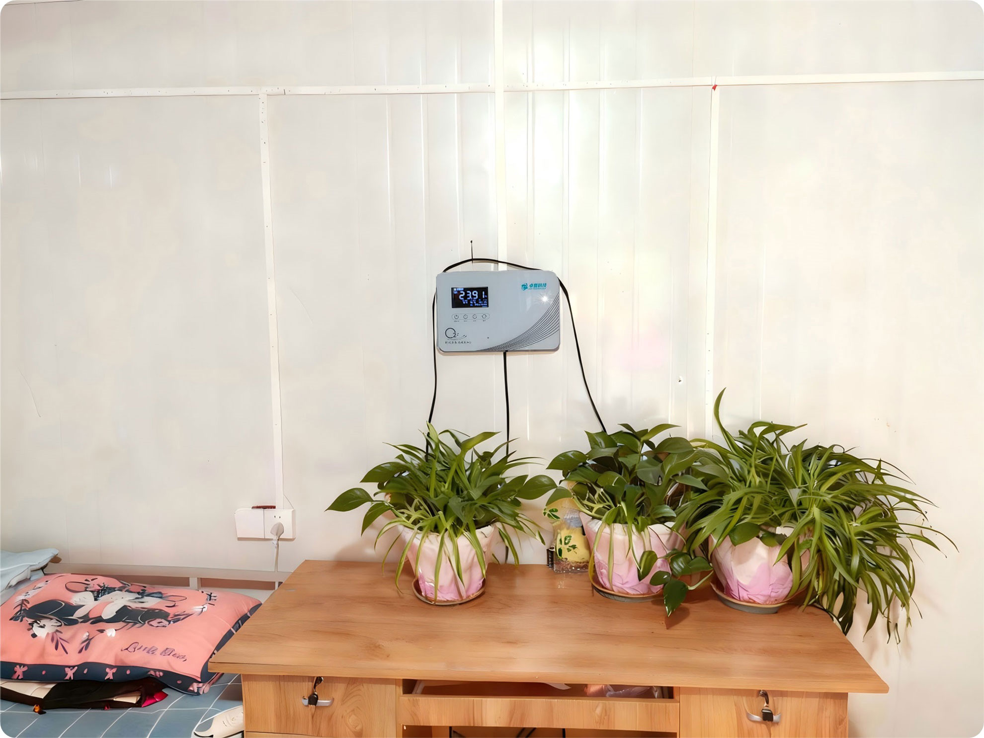 通过先进的弥散式供氧技术,成功将“氧吧”引入宿舍、办公室、值班室等多个区域。供氧管道与弥散供氧氧源制氧方舱紧密连接,沿岩棉彩钢房宿舍区顶部铺设一圈不锈钢主管,采用焊接成型并使用三脚架固定,具备抗风抗冻的稳固性能。每间30㎡的宿舍均配备三通及PU软管入户,并辅以线槽保护,既美观又大方。床头安装一台5寸液晶弥散供氧终端,实时显示氧浓度,操作简便,一键启停,且运行静音。宿舍内氧气充足,热水供应便捷,工人们的精神状态显著改善,工作效率大幅提升。