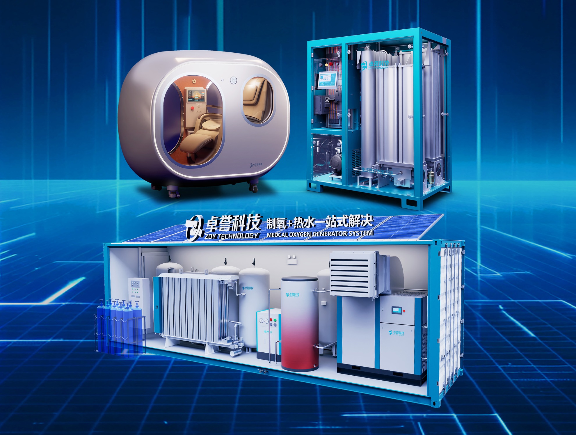 产品的生命力,源于对技术极致的不懈追求与对客户需求的深刻洞察。2025年,卓誉以技术为利器,攻克行业痛点,实现产品力的全面提升,为客户创造更高价值与更优体验:卓誉通过模块化设计,大幅提高制氧效率、降低综合成本,同时使制氧设备体积缩小50%,无论是狭窄机房还是户外站点,都能实现快速部署与灵活适配;通过空压比精准优化与氮气回收技术的协同运用,搭配全线配置的IE5高效永磁电机,降低能耗;通过浓度与流量双控保持技术,即便在极端温差等复杂环境下,仍能确保氧气输出的长期稳定性,让每一次用氧都安全可靠;通过全系统不锈钢处理工艺,对核心部件与外部结构进行全面升级,确保设备长期运行的耐用性与可靠性,大幅降低后续维护成本。卓誉制氧机全面配置的热能回收系统,在提供稳定氧气的同时满足日常热水需求,并可选择性配备光伏辅助供电系统,为“绿色医院”的低碳节能建设提供切实可行的解决方案。我们通过技术创新与产品升级,共同构建起卓誉在市场中的强大竞争力。