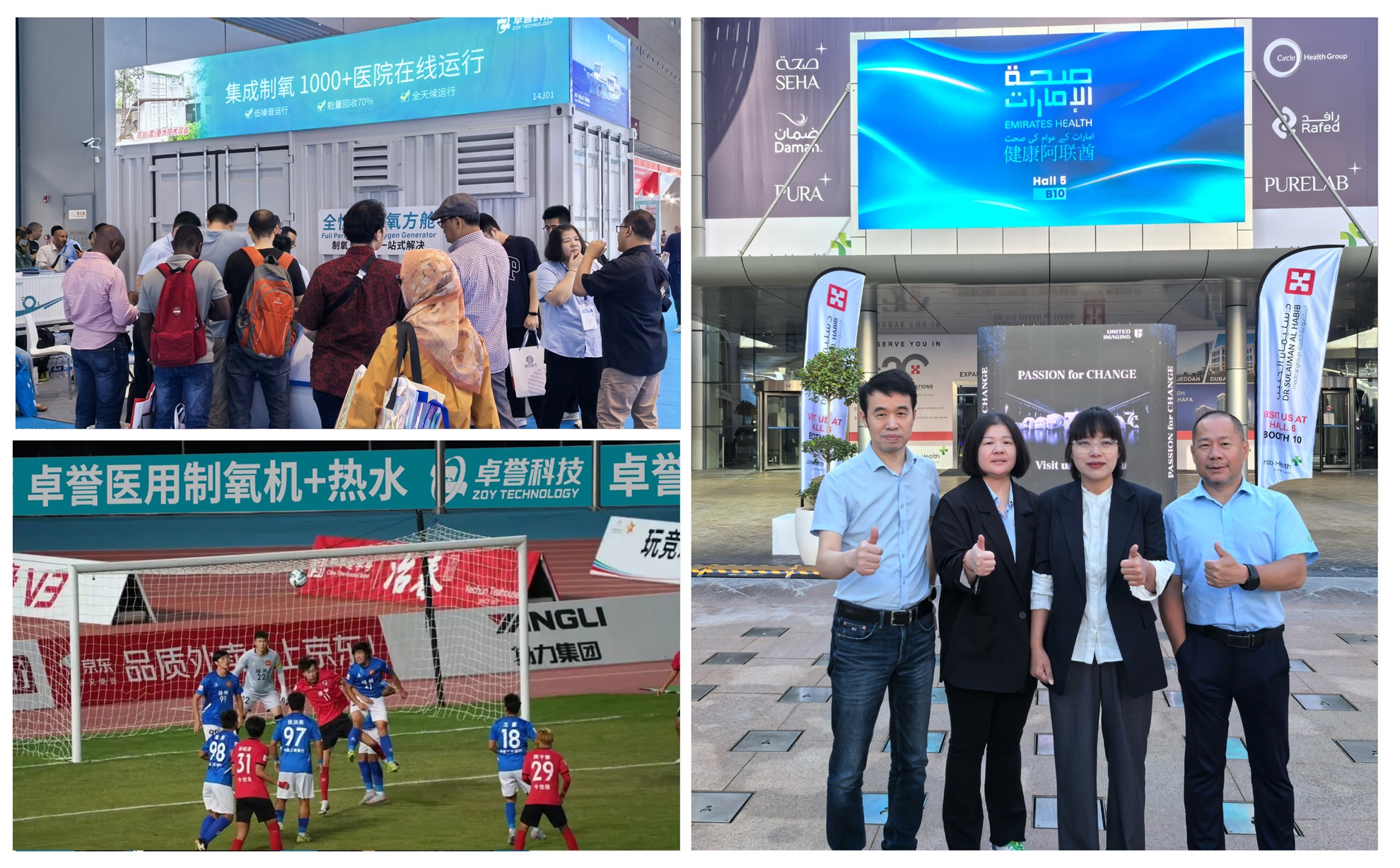 2025年,卓誉活跃于国内外舞台。在迪拜医疗展、印尼医疗展上,其模块化制氧方案吸引了全球客户的关注;在中国国际医疗器械博览会上,绿色医院解决方案成为行业关注与热议的核心焦点;在苏超联赛赛场旁,“卓誉蓝”的全屋供氧为更多人所知晓。每一次亮相,都是品牌实力的有力展现,也使卓誉在全球范围内获得了认知与了解。