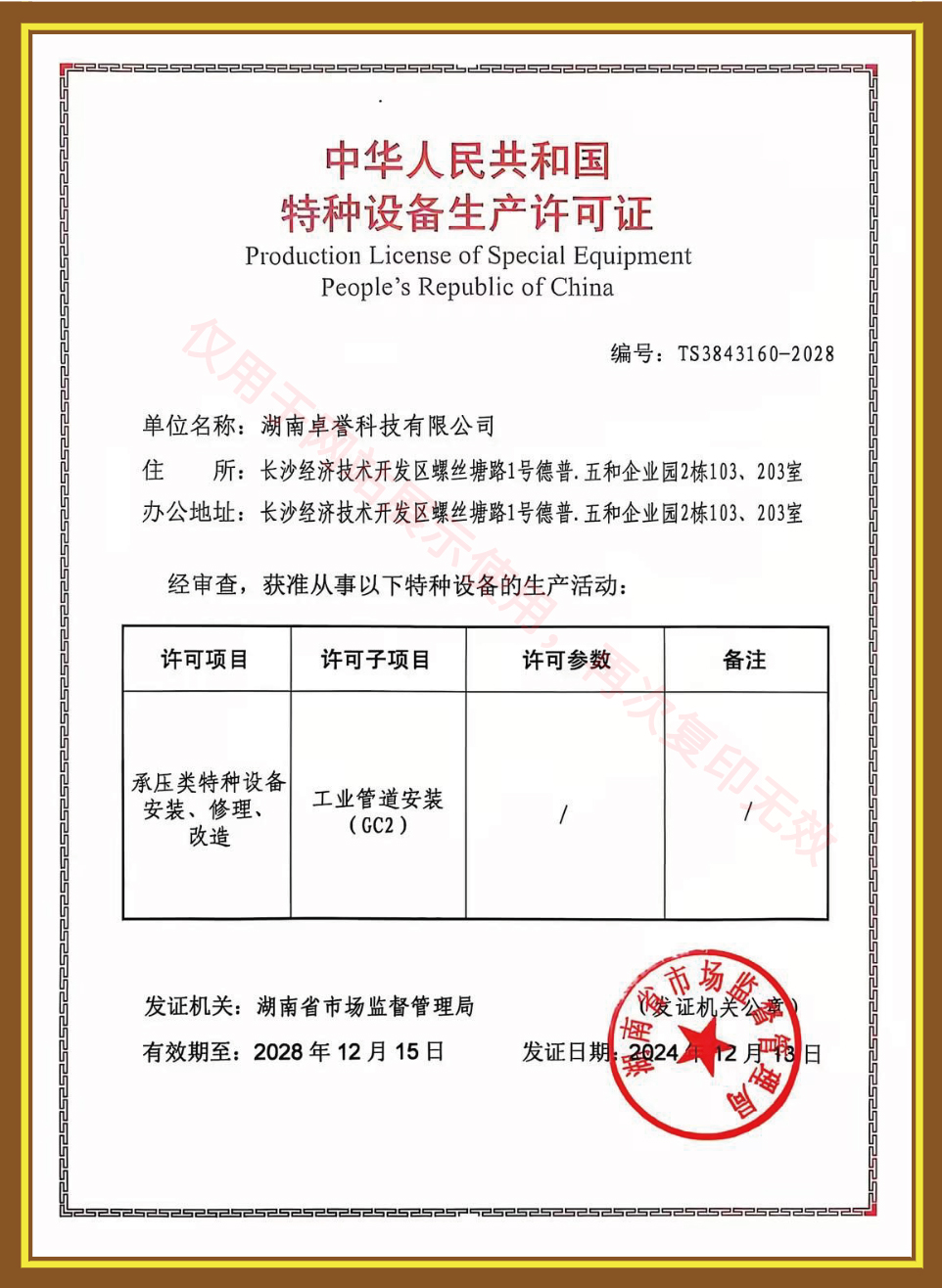 特种设备生产安装许可证